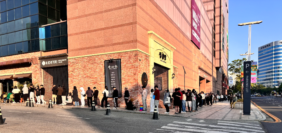 오른쪽 대로변 롯데백화점을 따라 줄을 서고도