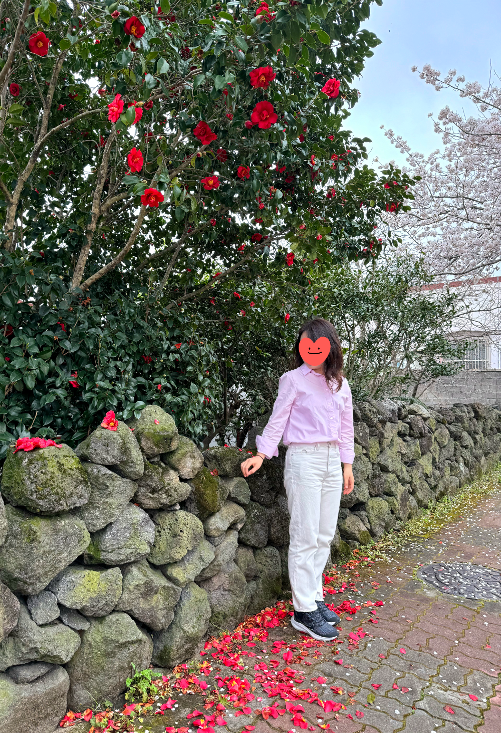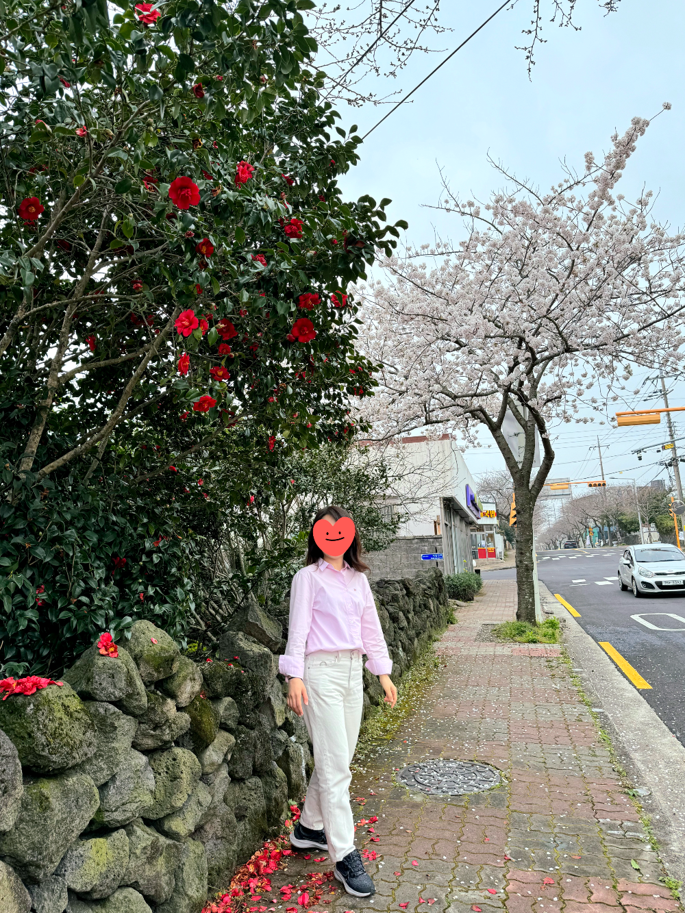 굿밭거리 버스정류장 앞, 벚꽃과 동백을 함께