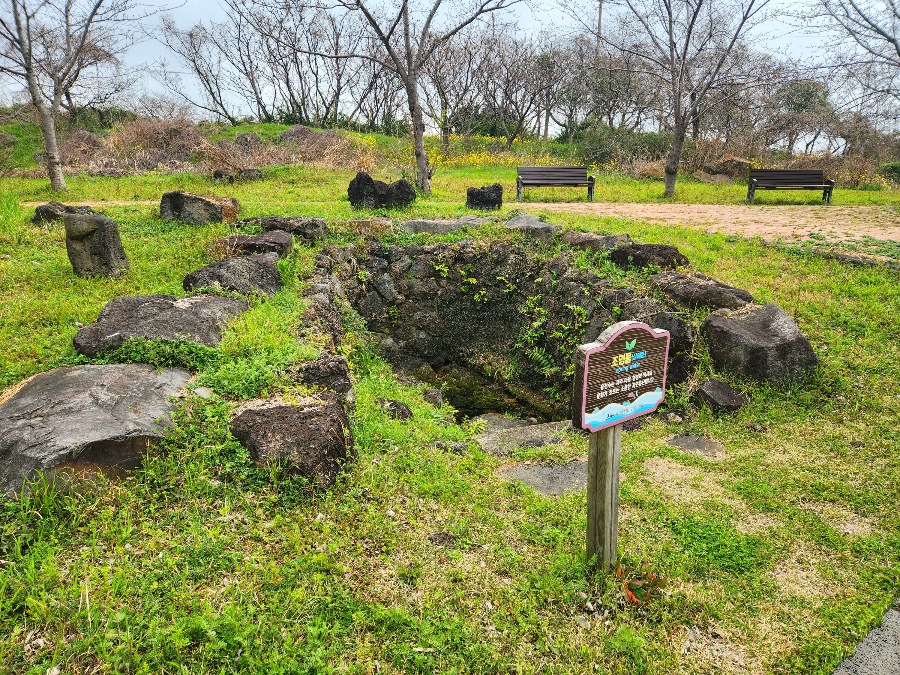 꽃길 방향으로 흐르게 되어있는 용천수가 고여있는 곳이에요.
